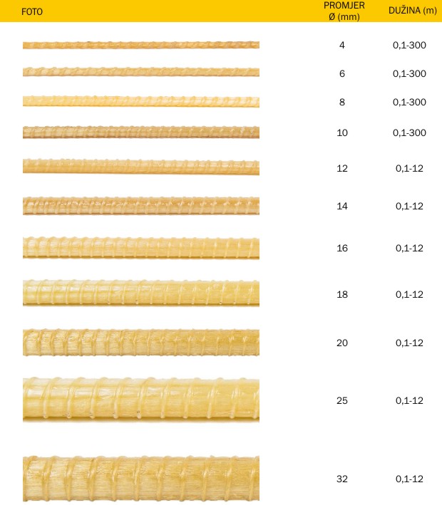 Armastek armatura je šipka promjera 4 do 20 mm bilo koje konstrukcijske duljine s rebrastom površinom spiralnog profila.