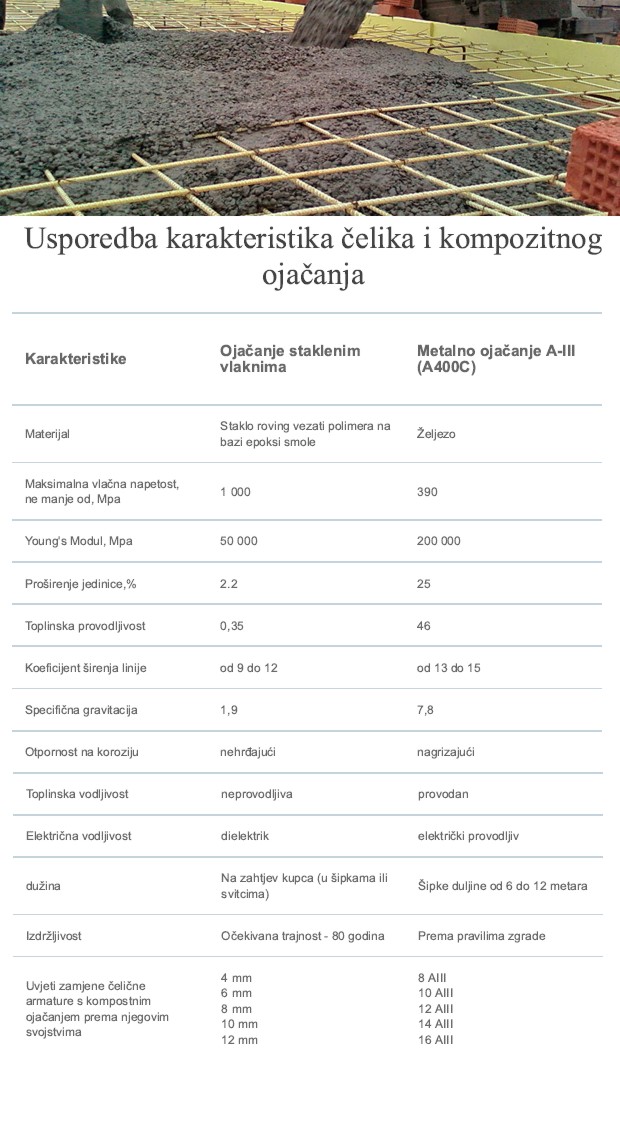 Ta se popularnost objašnjava činjenicom da kompozitna armatura ima neke prednosti u usporedbi s čeličnom armaturom. Svi znaju da je čelična armatura vrlo teška i da je potrebno mnogo energije i vremena za ugradnju. Štoviše, izložena je koroziji koja može uzrokovati ranije uništavanje betonske konstrukcije.